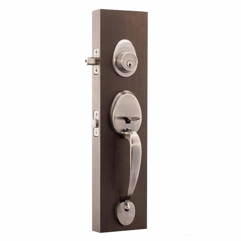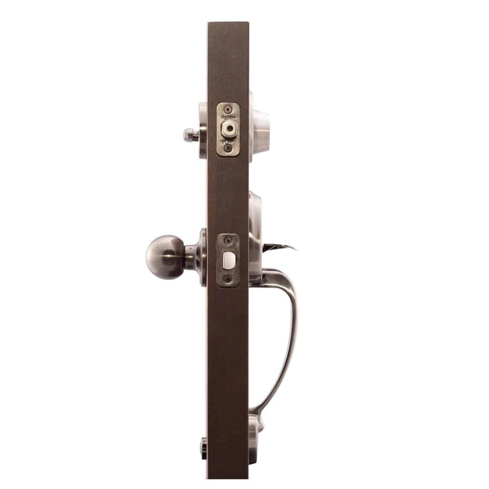 Copper Creek Colonial Handle Sets in Satin Stainless finish provide excellent value. These handle sets are available with multiple trim options including ball, colonial and egg knobs as well as Waverlie, Georgia, Modern and Verona levers. Manufactured to the highest standards using the finest materials available, they are time tested to meet the toughest national building codes for new construction. Standard cross bore hole spacing is 5-1/2 ft. but will fit from 4-1/2 ft. and up. The interior trims feature a full 1-throw deadbolt, an ADA decorative turn piece, round corner faceplate adjustable latches and rich finish to match. This handle set is standard replacement for most residential construction and meets ANSI/BHMA grade-3.