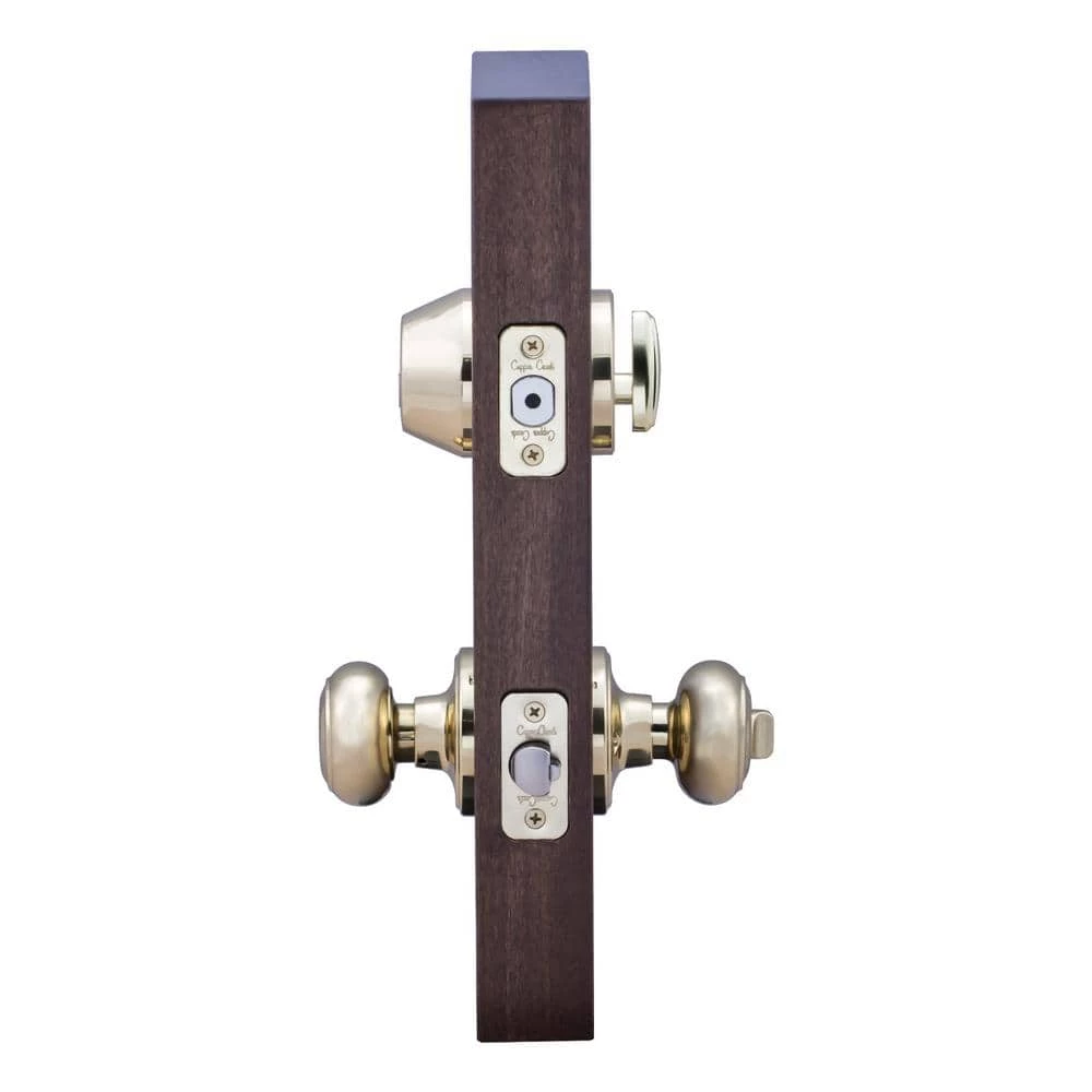 This elegant colonial door knob and deadbolt combination makes replacing your door hardware easy. These beautiful locksets provide the perfect harmony between style and peace of mind security. This polished brass finish is captivating, resistant to smudging and offers strong durability. These locksets are designed to fit most residential doors, concealed screws and meet the uncompromising grading standards of the ANSI for residential and builders hardware.