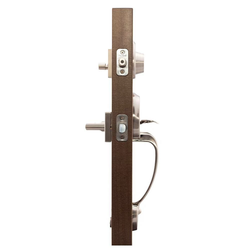 Copper Creek Colonial Handle Sets in Satin Stainless finish provide excellent value. These handle sets are available with multiple trim options including ball, colonial and egg knobs as well as Waverlie, Georgia, Modern and Verona levers. Manufactured to the highest standards using the finest materials available, they are time tested to meet the toughest national building codes for new construction. Standard cross bore hole spacing is 5-1/2 ft. but will fit from 4-1/2 ft. and up. The interior trims feature a full 1-throw deadbolt, an ADA decorative turn piece, round corner faceplate adjustable latches and rich finish to match. This handle set is standard replacement for most residential construction and meets ANSI/BHMA grade-3.
