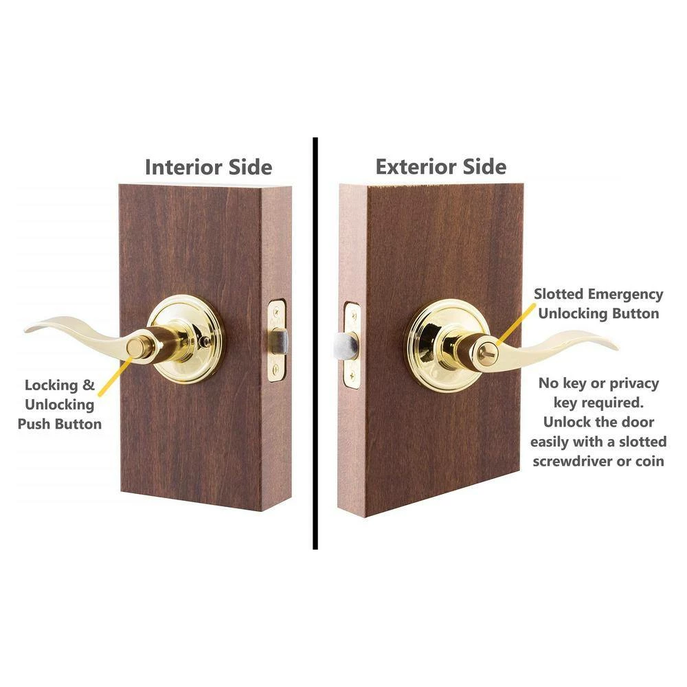Whether you are remodeling your home or whether you plan to build a new home, this best-selling classic colonial style, the Waverlie non-handed push button privacy lever features marvelous design principles with peace of mind security. This polished brass finish is alluring, resistant to smudging and offers timeless durability. These locksets are designed to fit most residential doors, featuring round corner adjustable latches, and meet the uncompromising grading standards of the ANSI for residential and builders hardware.