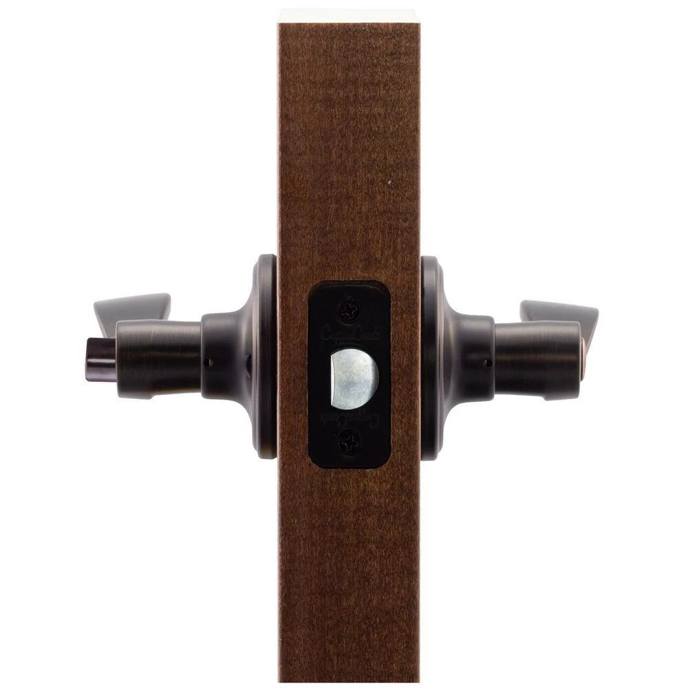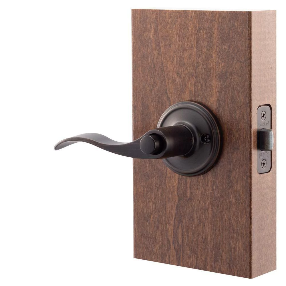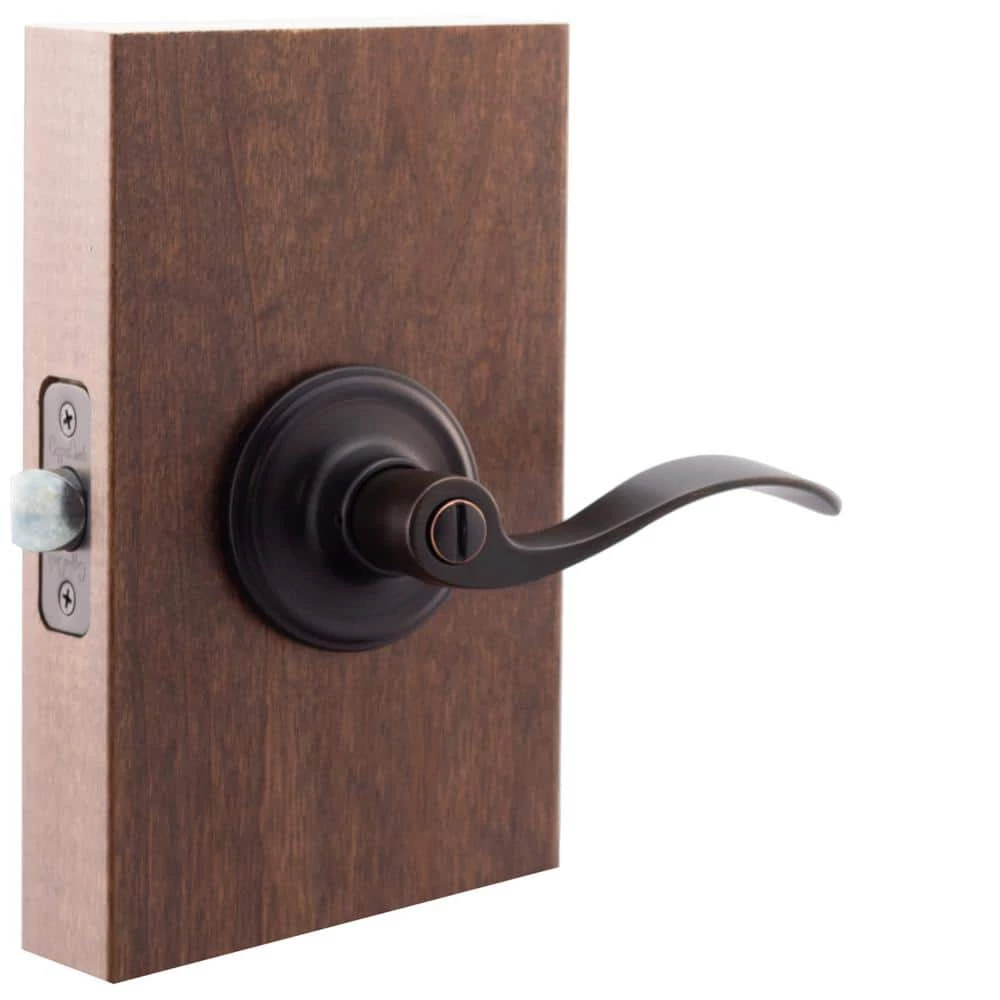 Whether you are remodeling your home or whether you plan to build a new home, this best-selling classic colonial style, the Waverlie non-handed push button privacy lever features marvelous design principles with peace of mind security. This Tuscan bronze finish is alluring, resistant to smudging and offers timeless durability. These locksets are designed to fit most residential doors, featuring round corner adjustable latches and meet the uncompromising grading standards of the ANSI for residential and builders hardware.