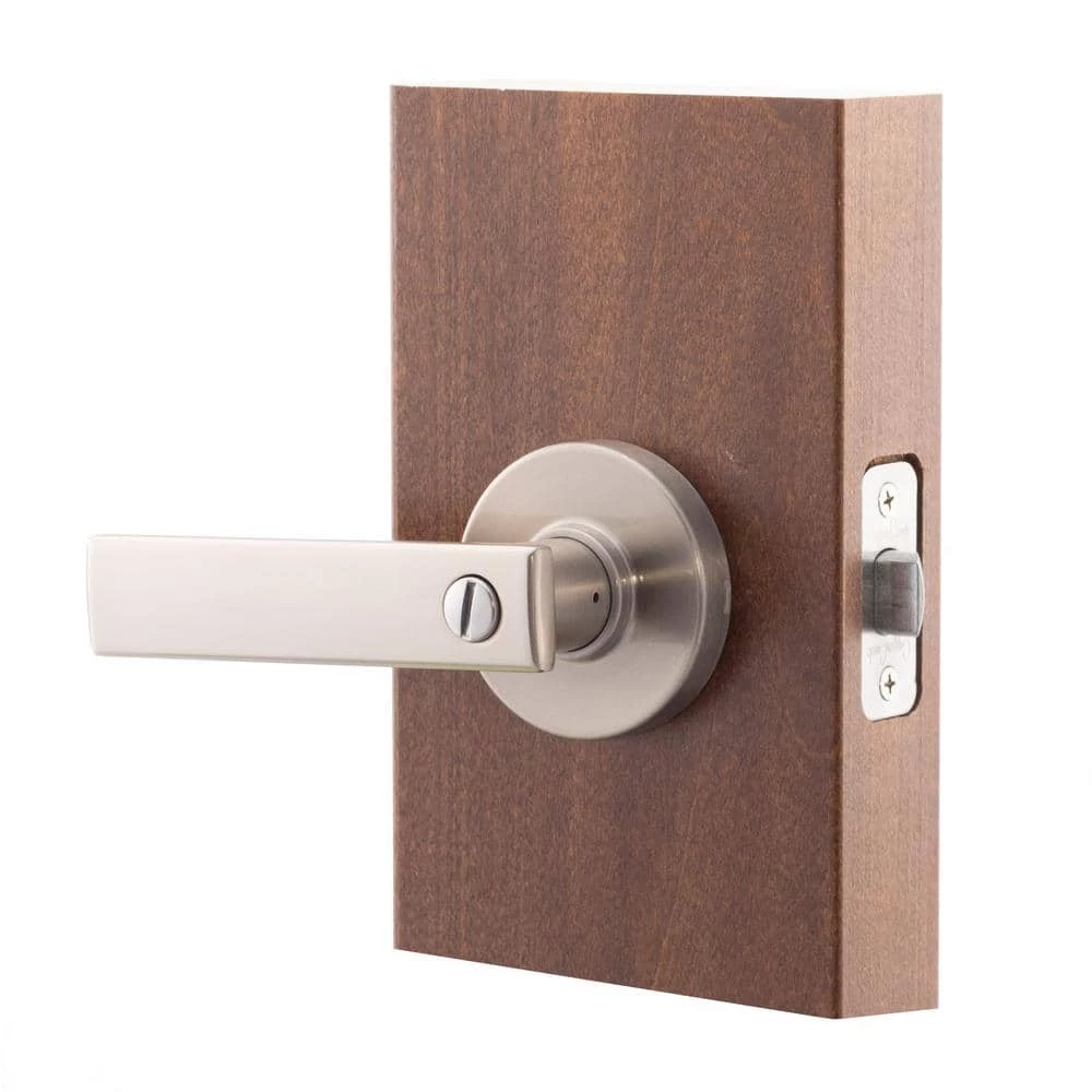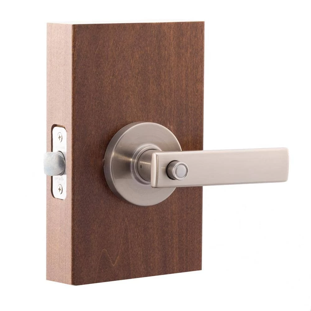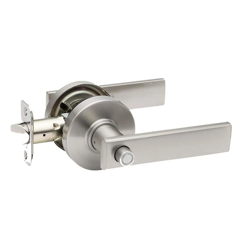 Whether you are remodeling your home or whether you plan to build a new home, this comforting craftsman style, non-handed push button privacy lever provides the perfect efficient design and undeniable security. This satin stainless finish is inviting, resistant to smudging and offers everlasting durability. These locksets are designed to fit most residential doors, feature nickel plated bolts, round corner adjustable latches and meet the uncompromising grading standards of the ANSI for residential and builders hardware.