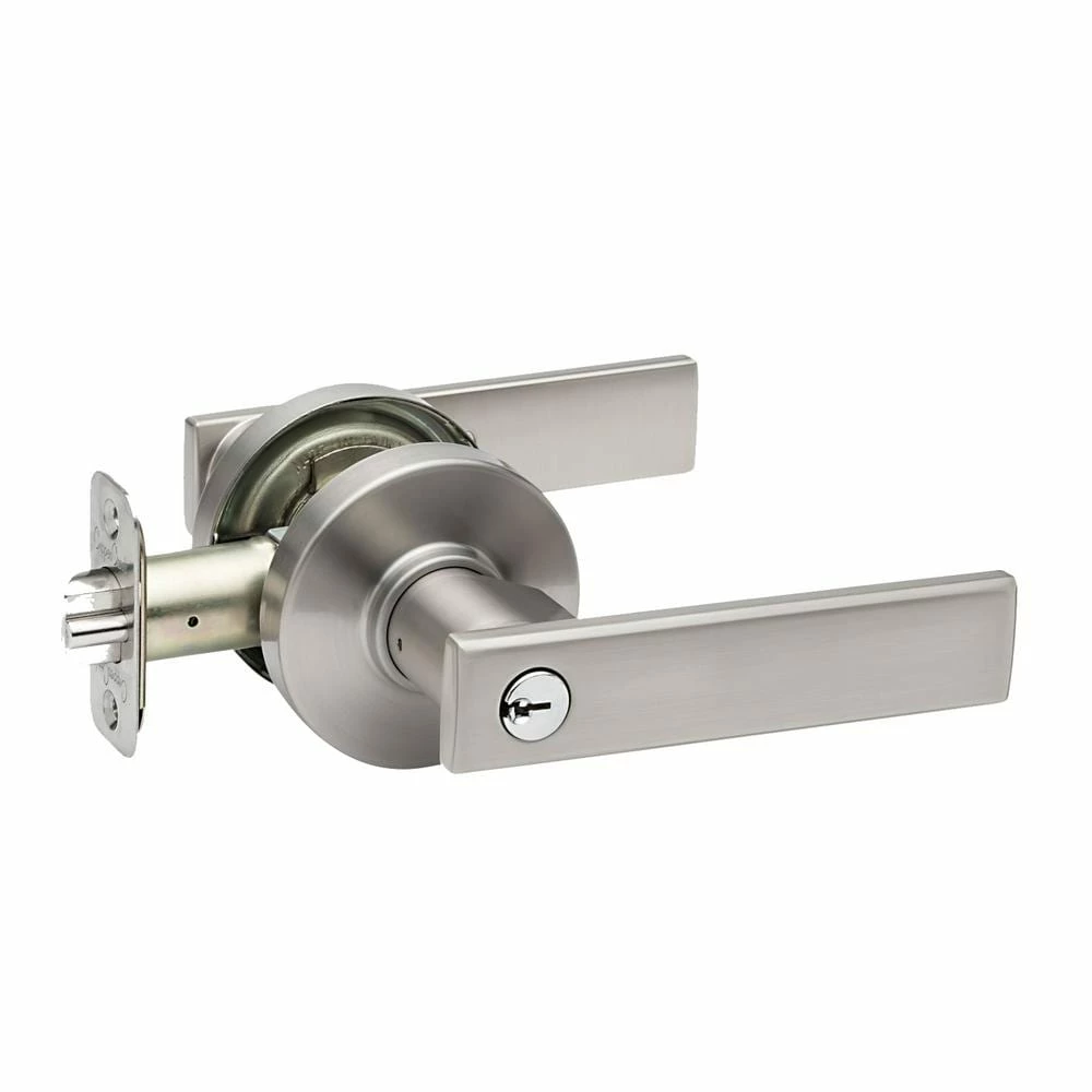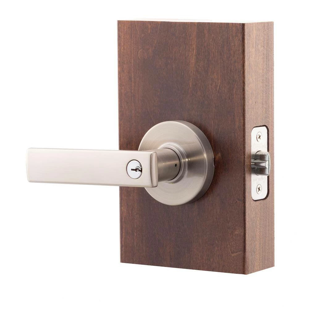 Whether you are remodeling your home or whether you plan to build a new home, this comforting craftsman style, non-handed keyed entry lever provides the perfect efficient design and undeniable security. This satin stainless finish is inviting, resistant to smudging and offers everlasting durability. These locksets are designed to fit most residential doors, feature nickel plated bolts, round corner adjustable latches and meet the uncompromising grading standards of the ANSI for residential and builders hardware.