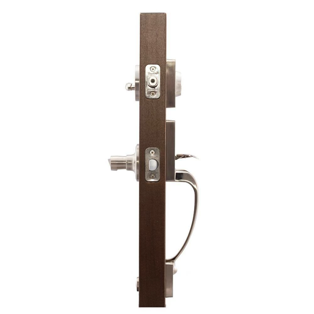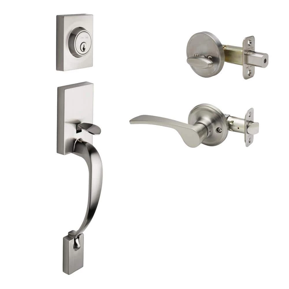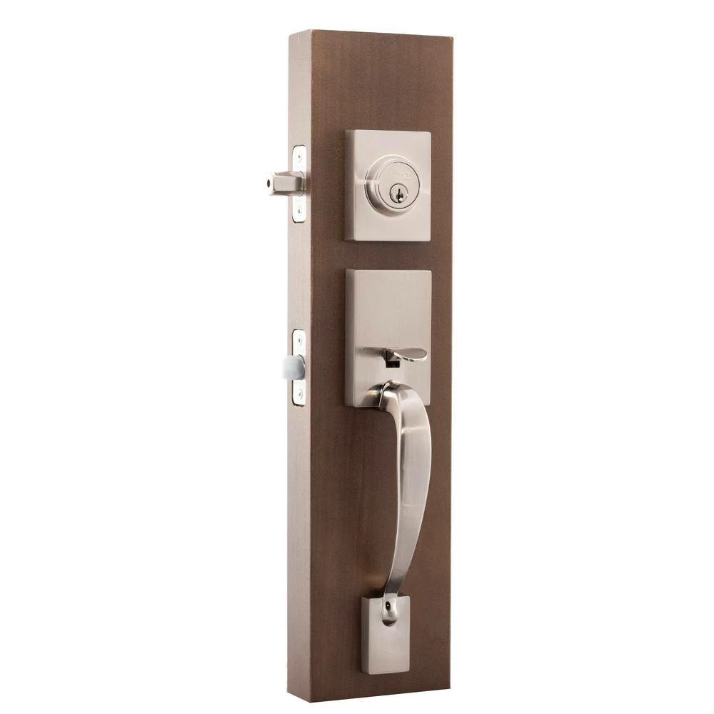 Whether you are remodeling your home or whether you plan to build a new home, this timeless craftsman style front door handle set with right hand Scandinavian lever interior trim provides the perfect balance between style sophistication and state-of-the-art security. This satin stainless finish is attractive, resistant to smudging and offers outstanding durability. These locksets are designed to fit most residential doors and meet the uncompromising grading standards of the ANSI for residential and builders hardware.