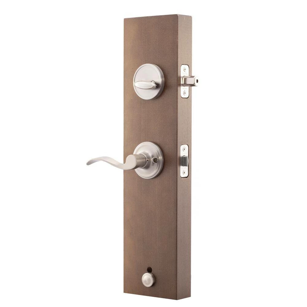Copper Creek Colonial Handle Sets in Satin Stainless finish provide excellent value. These handle sets are available with multiple trim options including ball, colonial and egg knobs as well as Waverlie, Georgia, Modern and Verona levers. Manufactured to the highest standards using the finest materials available, they are time tested to meet the toughest national building codes for new construction. Standard cross bore hole spacing is 5-1/2 ft. but will fit from 4-1/2 ft. and up. The interior trims feature a full 1-throw deadbolt, an ADA decorative turn piece, round corner faceplate adjustable latches and rich finish to match. This handle set is standard replacement for most residential construction and meets ANSI/BHMA grade-3.
