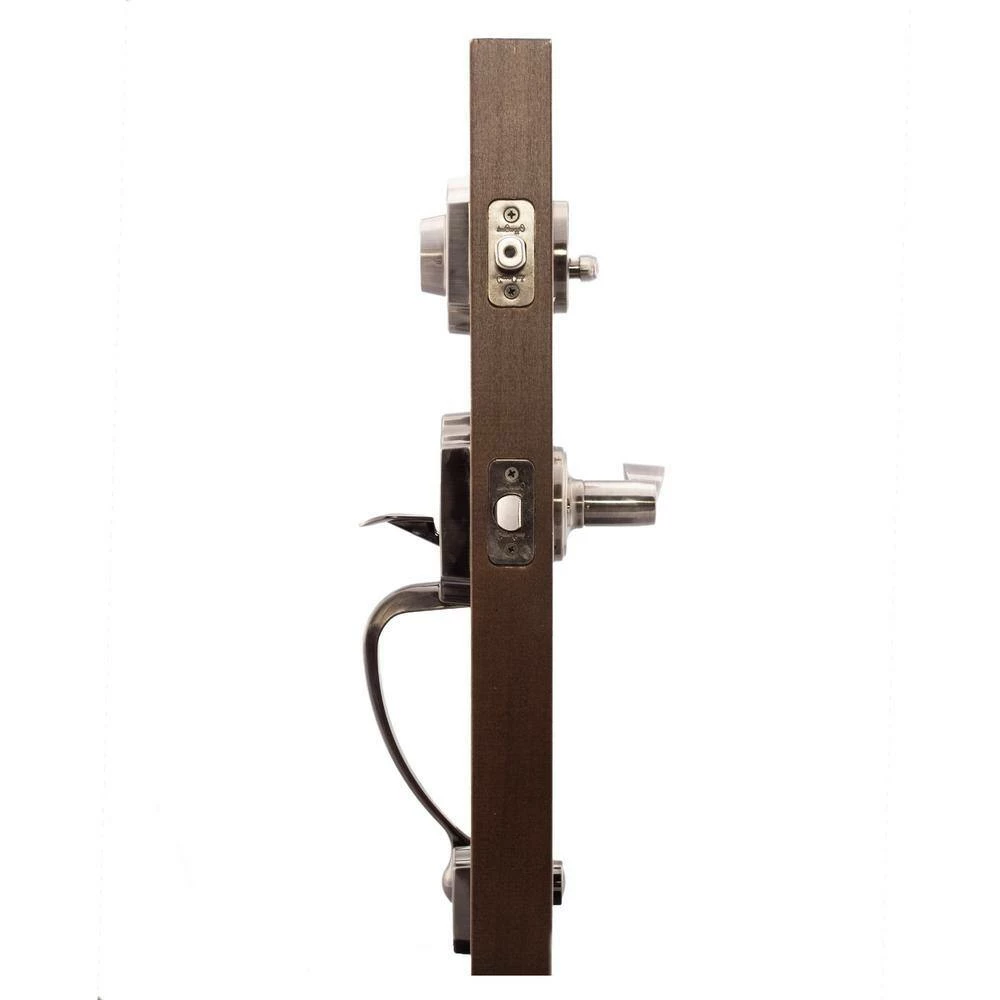 Copper Creek Colonial Handle Sets in Satin Stainless finish provide excellent value. These handle sets are available with multiple trim options including ball, colonial and egg knobs as well as Waverlie, Georgia, Modern and Verona levers. Manufactured to the highest standards using the finest materials available, they are time tested to meet the toughest national building codes for new construction. Standard cross bore hole spacing is 5-1/2 ft. but will fit from 4-1/2 ft. and up. The interior trims feature a full 1-throw deadbolt, an ADA decorative turn piece, round corner faceplate adjustable latches and rich finish to match. This handle set is standard replacement for most residential construction and meets ANSI/BHMA grade-3.