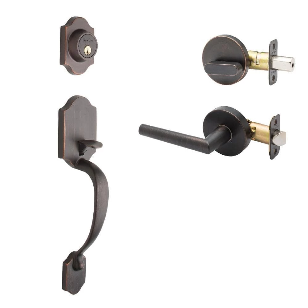 Copper Creek Colonial Handle Sets in Satin Stainless finish provide excellent value. These handle sets are available with multiple trim options including ball, colonial and egg knobs as well as Waverlie, Georgia, Modern and Verona levers. Manufactured to the highest standards using the finest materials available, they are time tested to meet the toughest national building codes for new construction. Standard cross bore hole spacing is 5-1/2 ft. but will fit from 4-1/2 ft. and up. The interior trims feature a full 1-throw deadbolt, an ADA decorative turn piece, round corner faceplate adjustable latches and rich finish to match. This handle set is standard replacement for most residential construction and meets ANSI/BHMA grade-3.