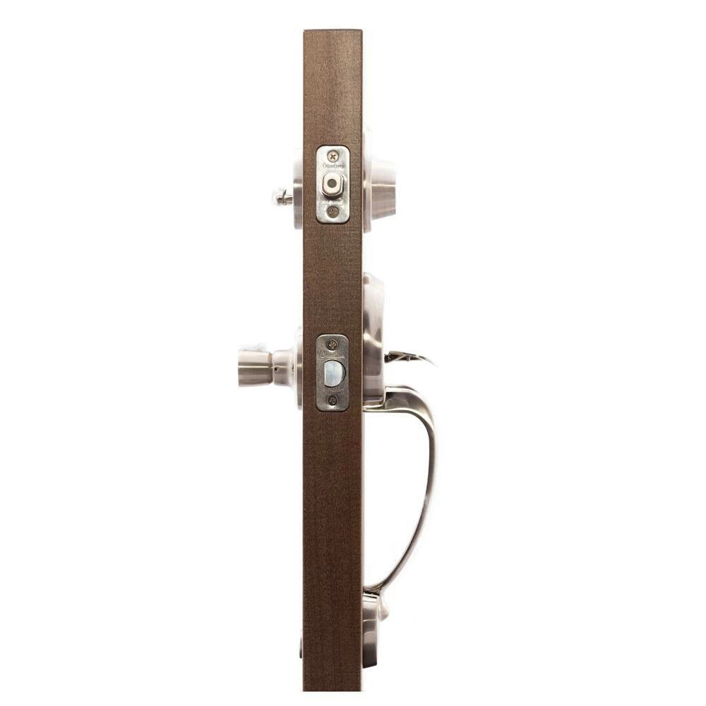 Whether you are remodeling your home or whether you plan to build a new home, this timeless mid-century style front door handle set with right hand Scandinavian lever interior trim provides the perfect balance between style sophistication and state-of-the-art security. This satin stainless finish is attractive, resistant to smudging and offers outstanding durability. These locksets are designed to fit most residential doors and meet the uncompromising grading standards of the ANSI for residential and builders hardware.