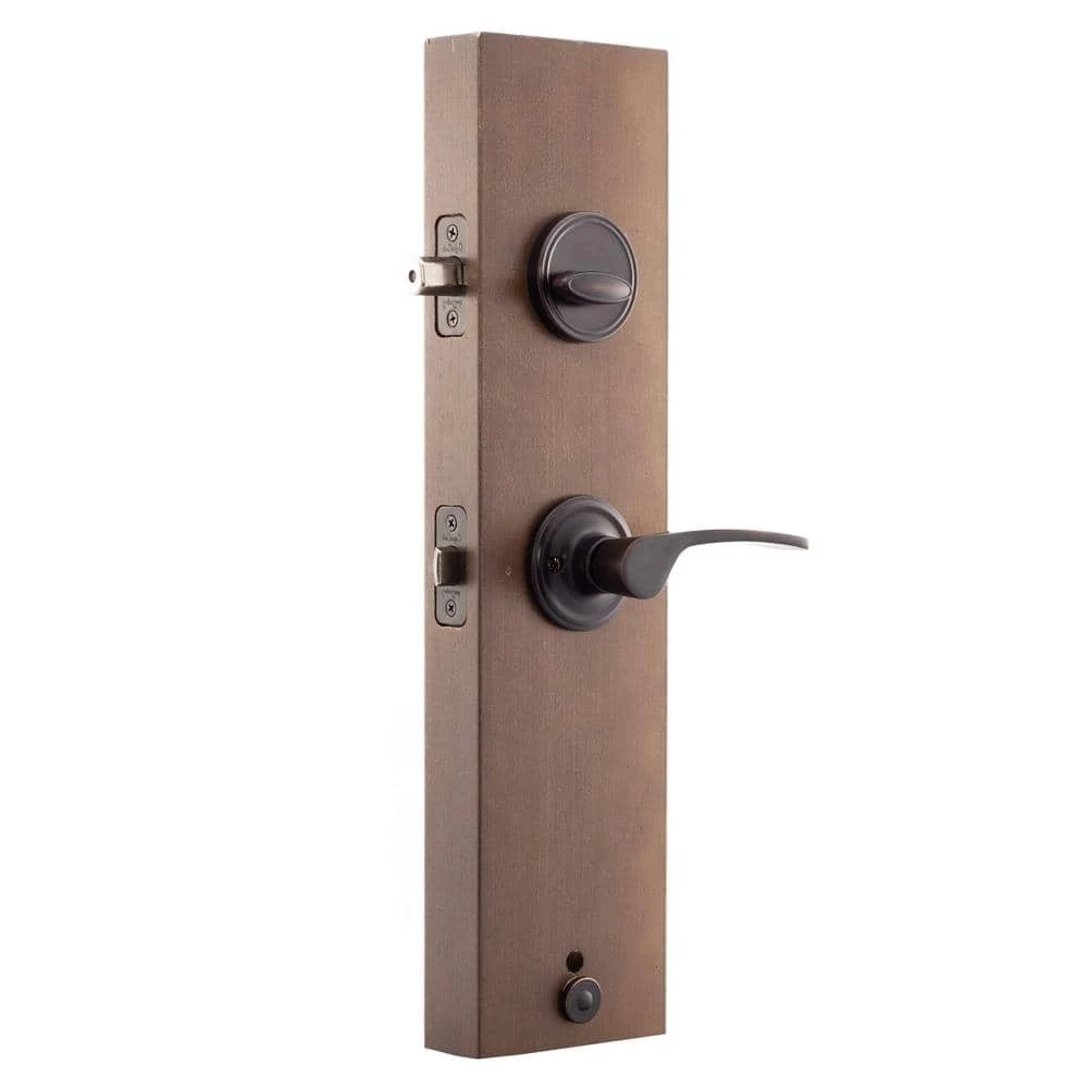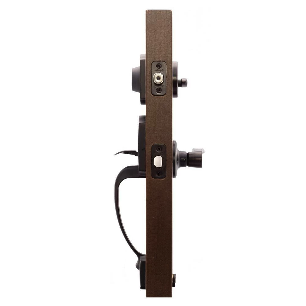 Whether you are remodeling your home or whether you plan to build a new home, this timeless soft contemporary style front door handle set with left hand Scandinavian lever interior trim provides the perfect balance between style sophistication and state-of-the-art security. This Tuscan bronze finish is attractive, resistant to smudging and offers outstanding durability. These locksets are designed to fit most residential doors and meet the uncompromising grading standards of the ANSI for residential and builders hardware.