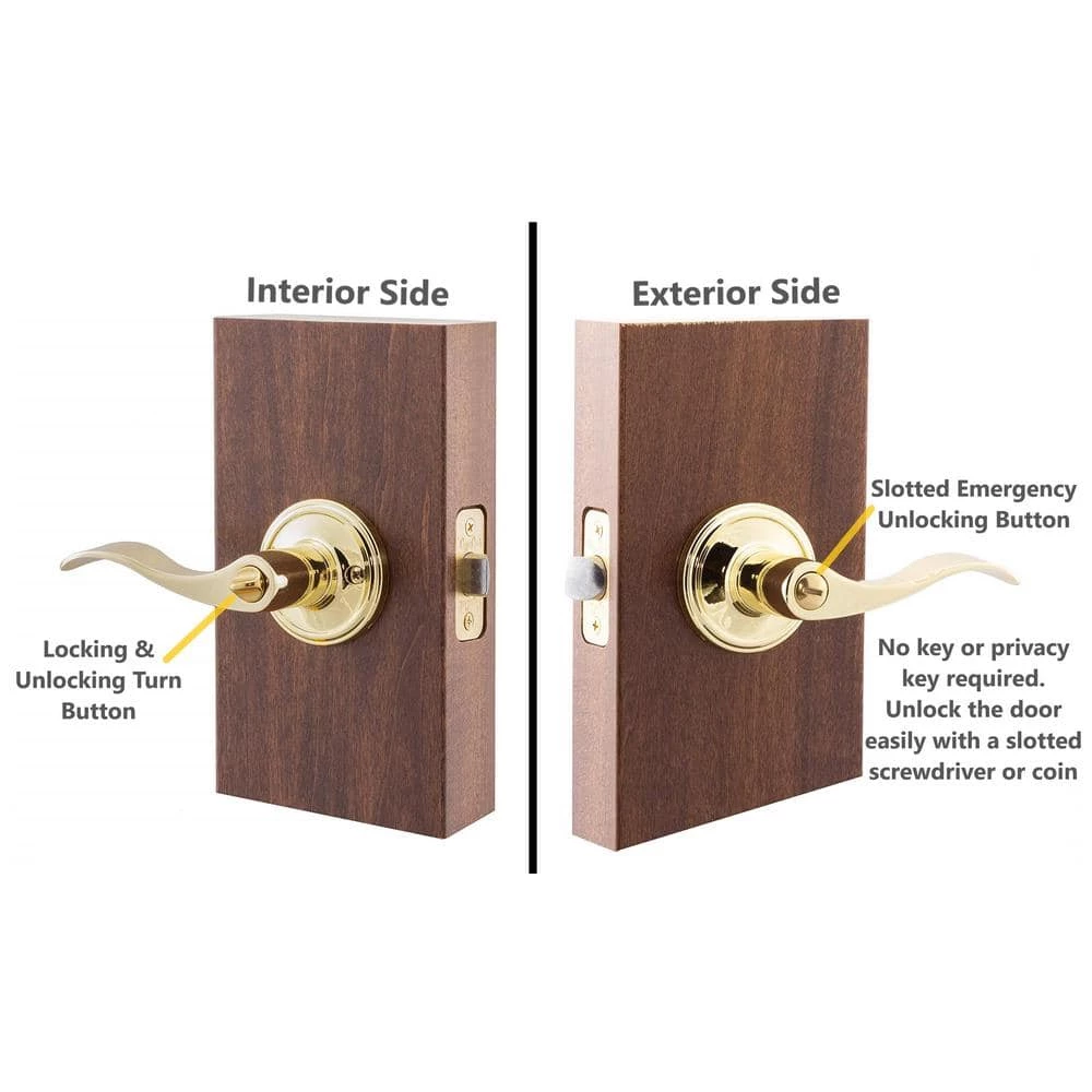Copper Creek Waverlie Polished Brass Privacy Bed/Bath Door Handle - Image 4