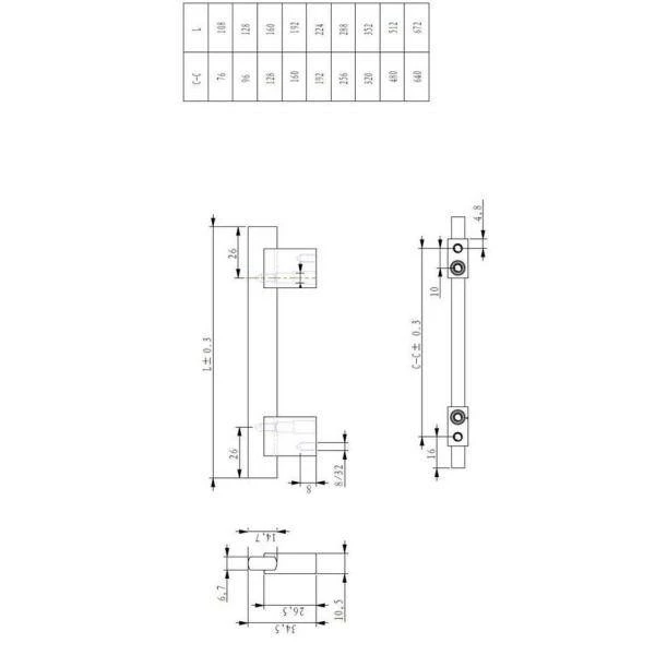 - Center to Center measurement (distance between the drill holes) : 12 5/8 in (320 mm)