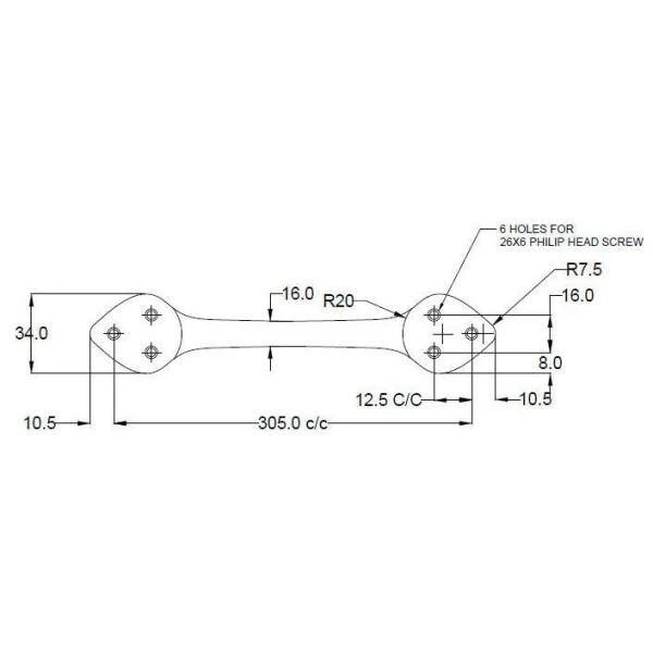 - Center to Center measurement (distance between the drill holes) : 12 in (305 mm)