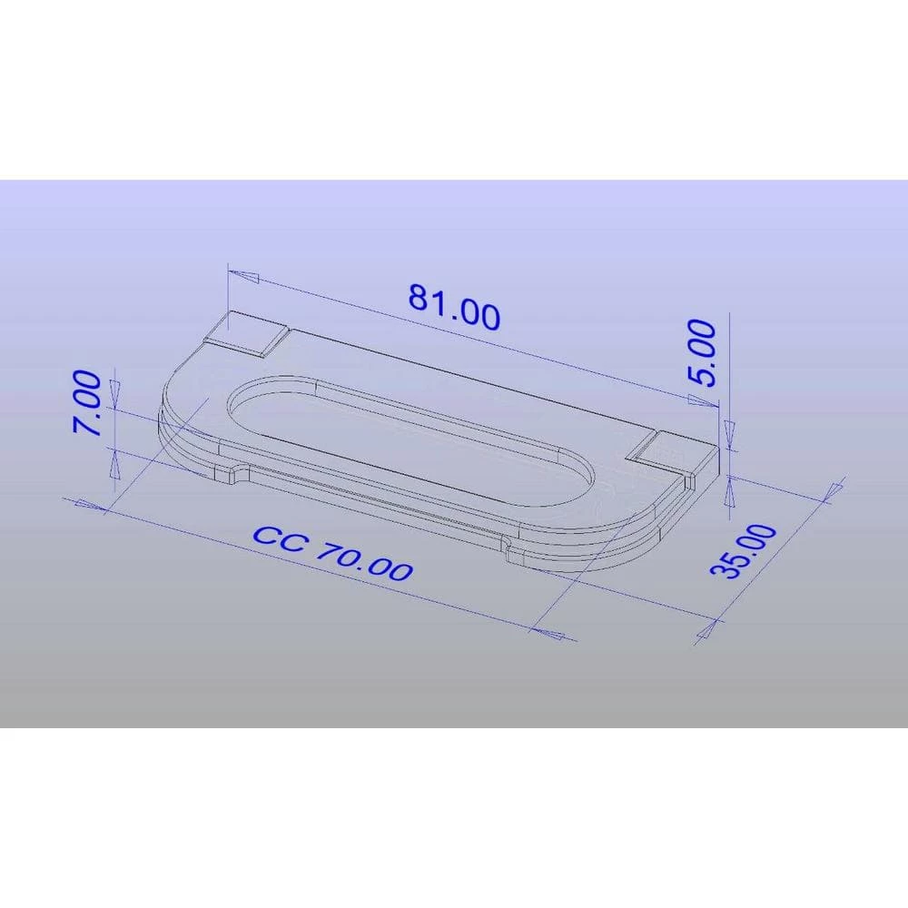 - Center to Center measurement (distance between the drill holes) : 2 3/4 in (70 mm)
