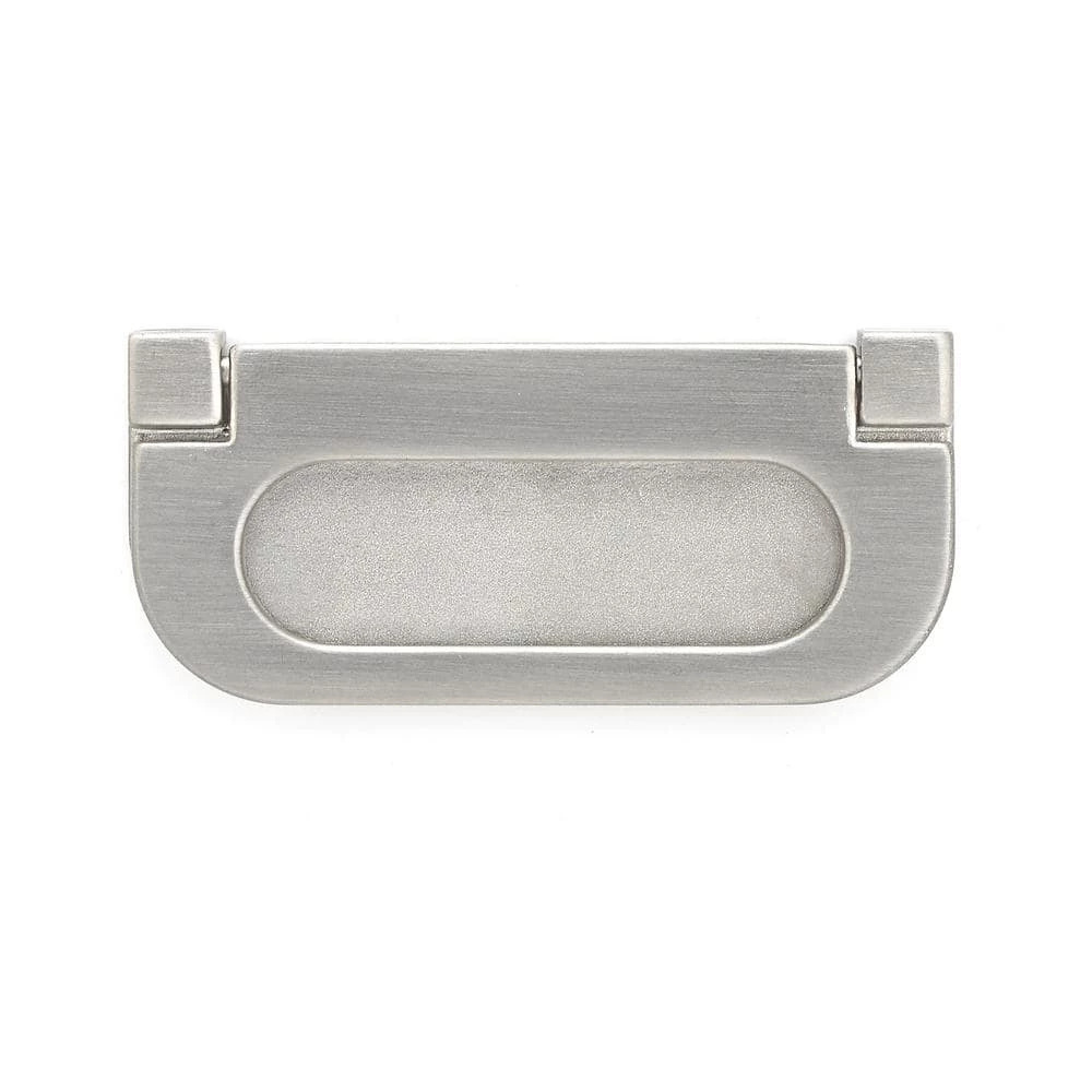 This drop pull with a rounded handle will upgrade drawers with modern flair. Please note that the screws included with the products are a standard size of 1-inch (25 mm) length, quadrex, pan head. They will fit with most of the popular melamine thicknesses, which range between 5/8-inches to 3/4-inches (16 mm to 19 mm).