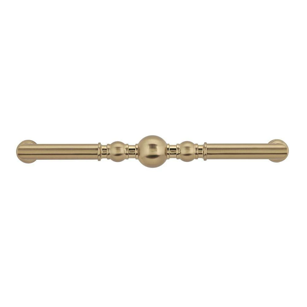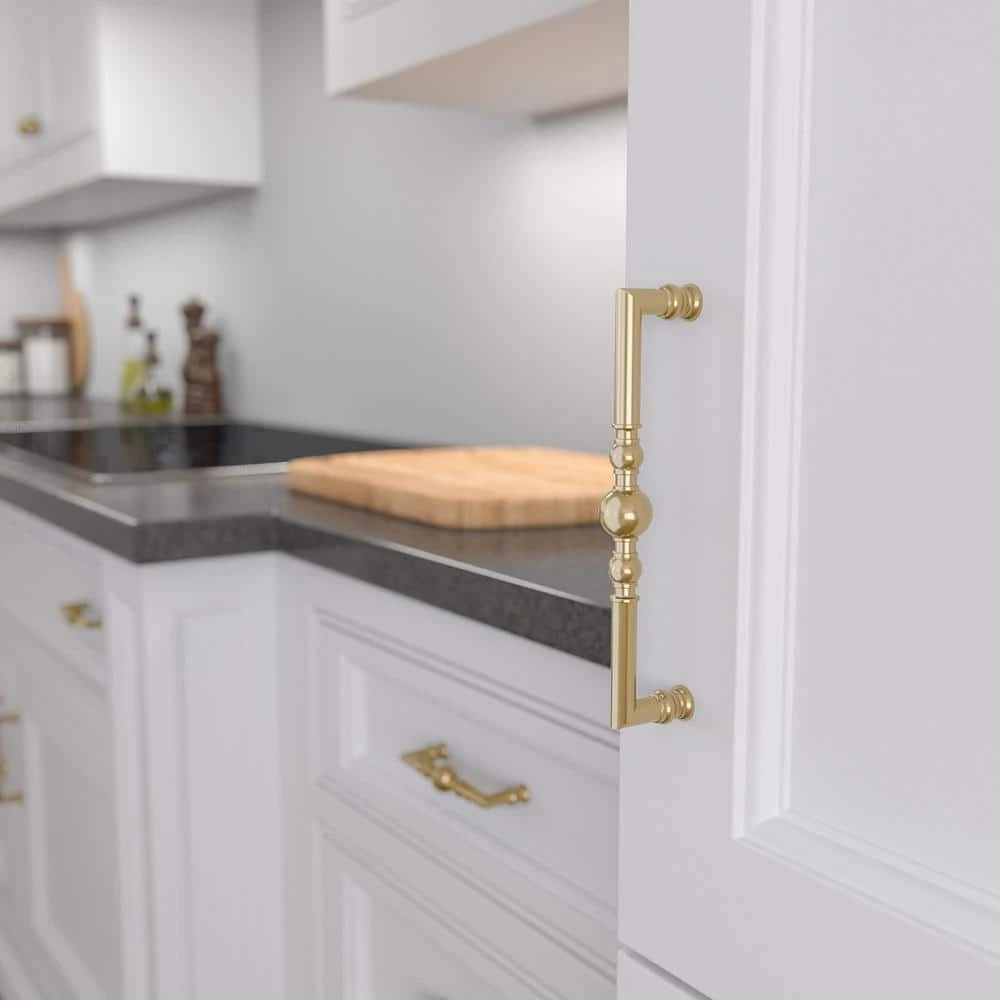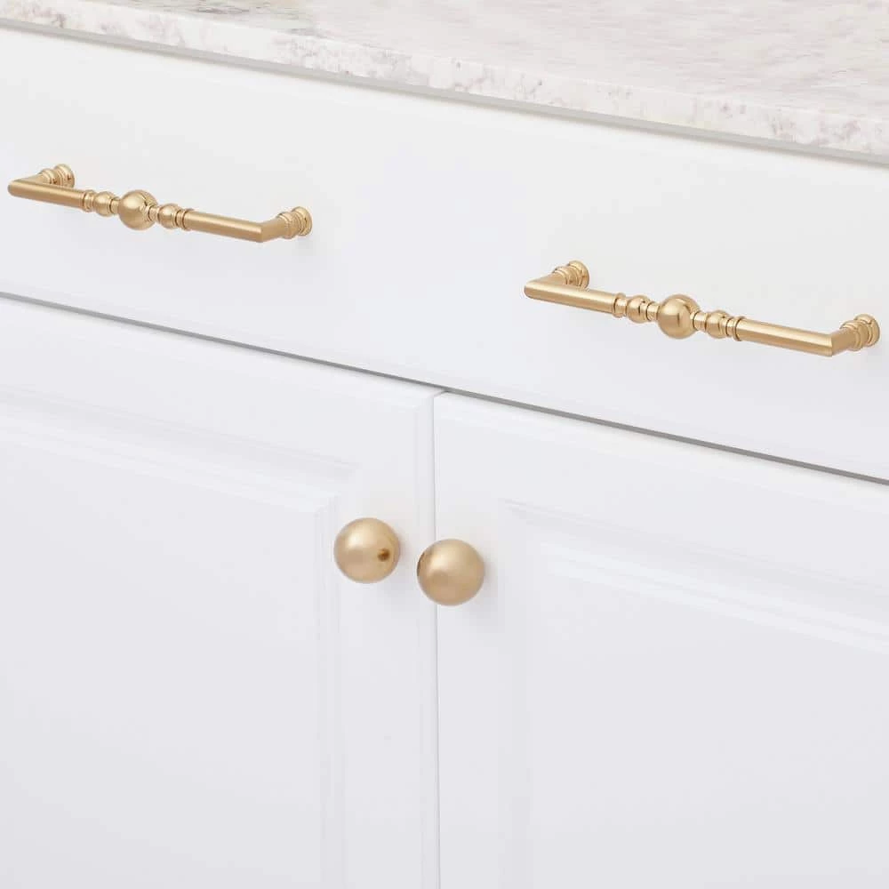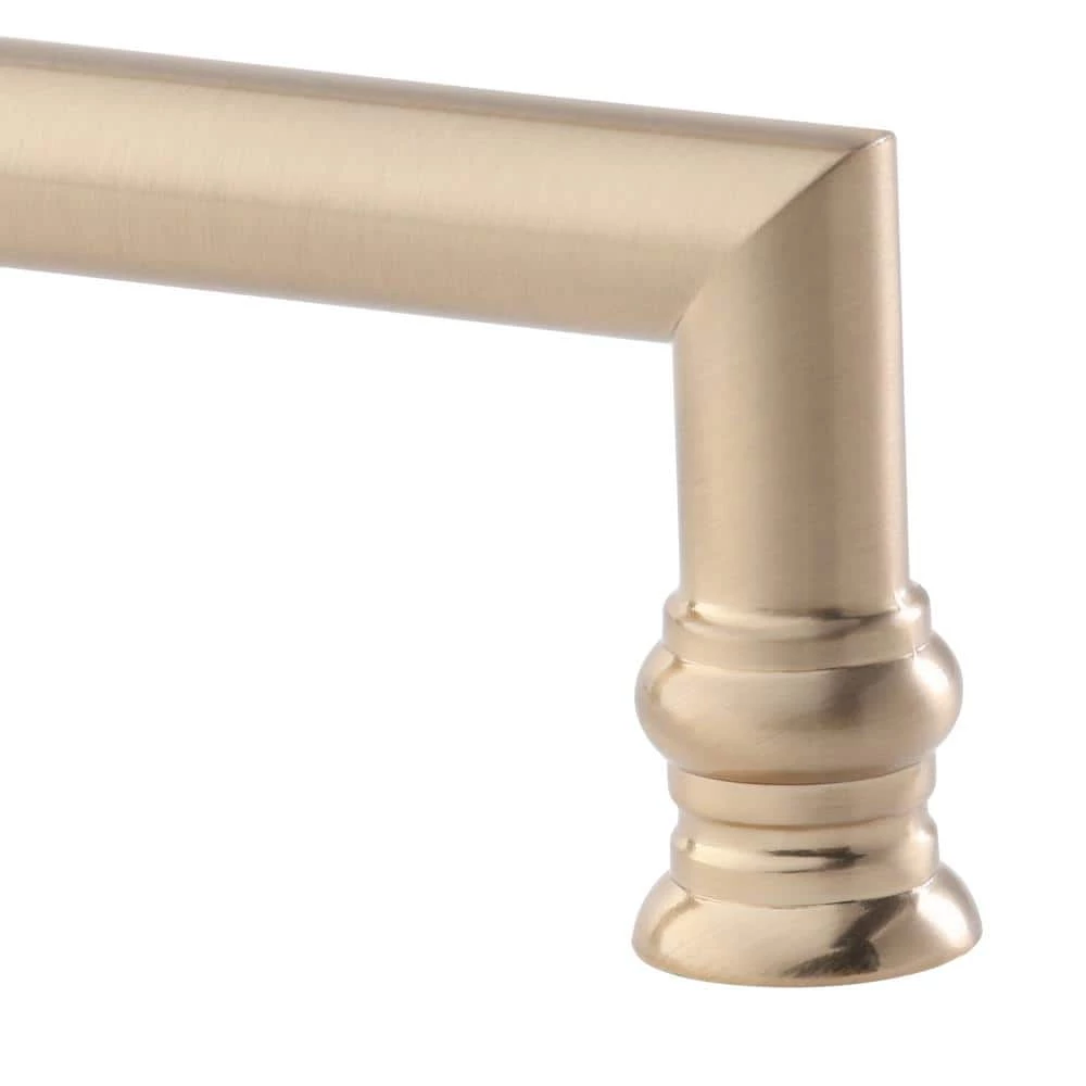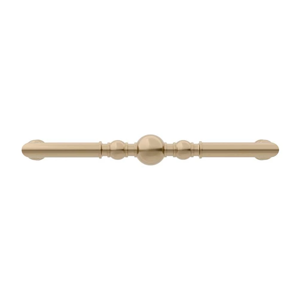 The symmetry of beads and rings along the handle of this classic pull will enhance the sophistication of any room. A pull designed with an elegant Champagne Bronze Finish. Easy rear-mount installation with included hardware.