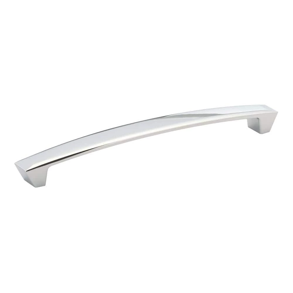 Contemporary metal pull by Richelieu. A simple, refined design that works well with all types of kitchen and bathroom decors. A pull designed with an elegant Chrome Finish. Easy rear-mount installation with included hardware.