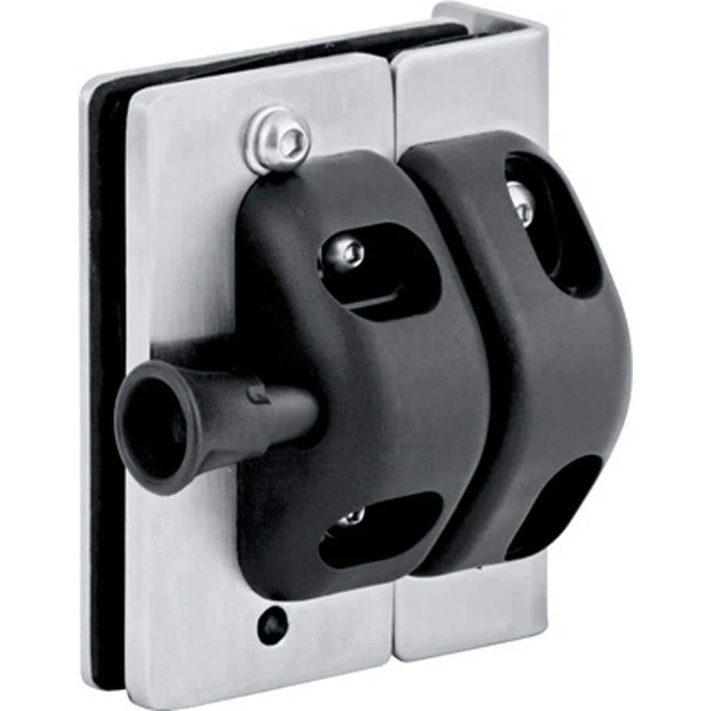 This magnetic latch is designed to create a corner joint between a glass panel and a wall or post pole in a safety glass barrier around a pool or patio. The latch features a side pull latch to further lock the glass door. Made of stainless steel, it can be installed either indoors or outdoors.