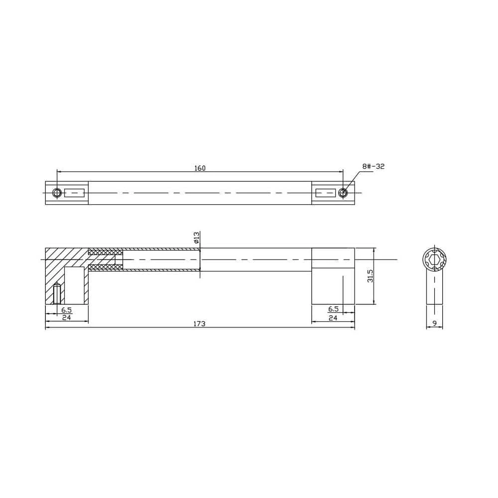 - Center to Center measurement (distance between the drill holes) : 6 5/16 in (160 mm)