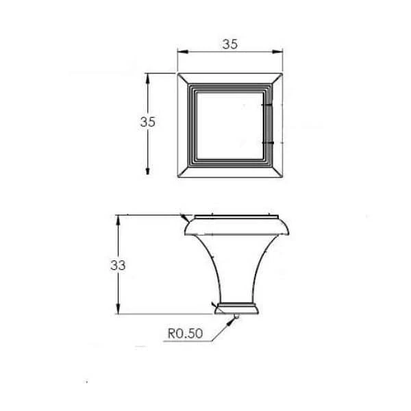 - Length x Width : 1 3/8 in (35 mm) x 1 3/8 in (35 mm)