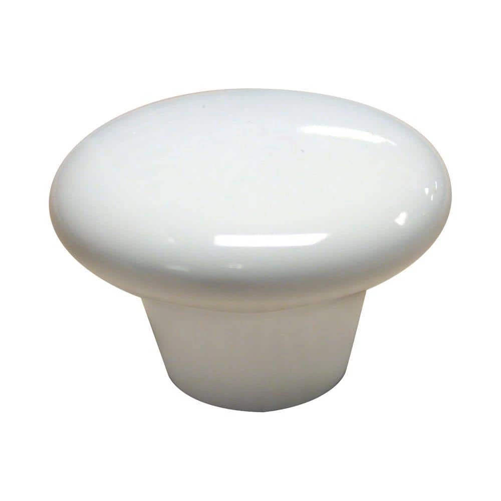 Contemporary flat round knob in ceramic. This product will look good on your drawer fronts. Please note that the screws included with the products are a standard size of 1 in (25 mm) length, quadrex, pan head. They will fit with most of the popular melamine thicknesses, which range between 5/8 in to 3/4 in (16 mm to 19 mm).