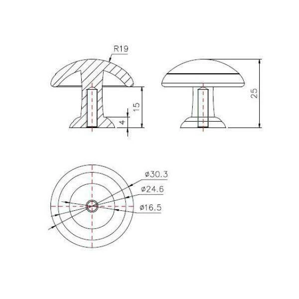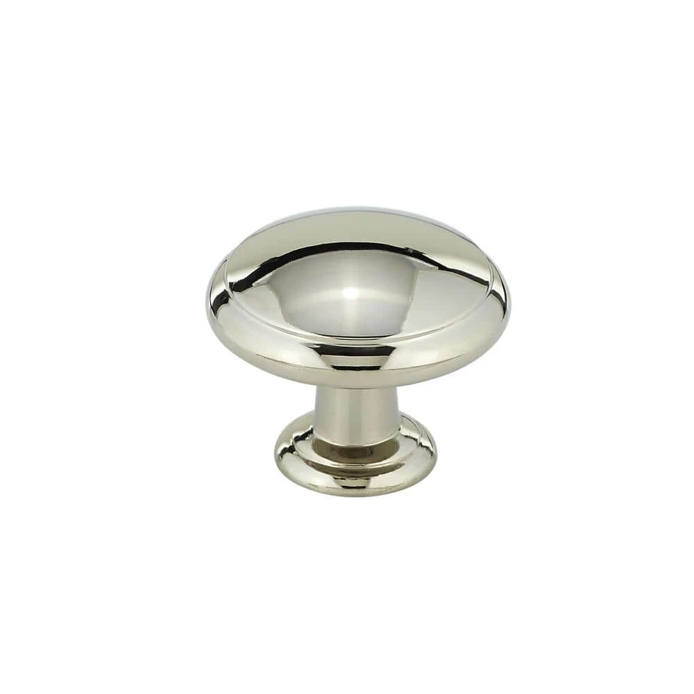 This transitional round knob will refresh the look of cabinets and furniture. The head and base of the knob are detailed with a subtle and simple border that blends well with all types of decor. Please note that the screws included with the products are a standard size of 1 in (25 mm) length, quadrex, pan head. They will fit with most of the popular melamine thicknesses, which range between 5/8 in to 3/4 in (16 mm to 19 mm).