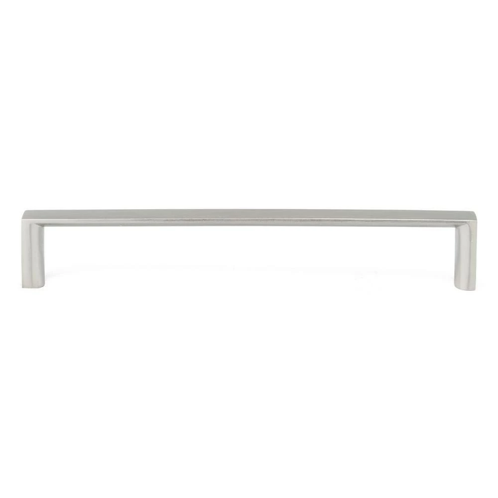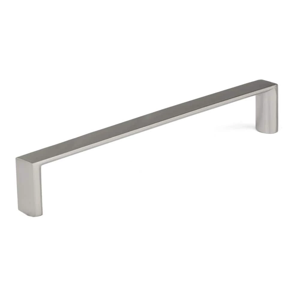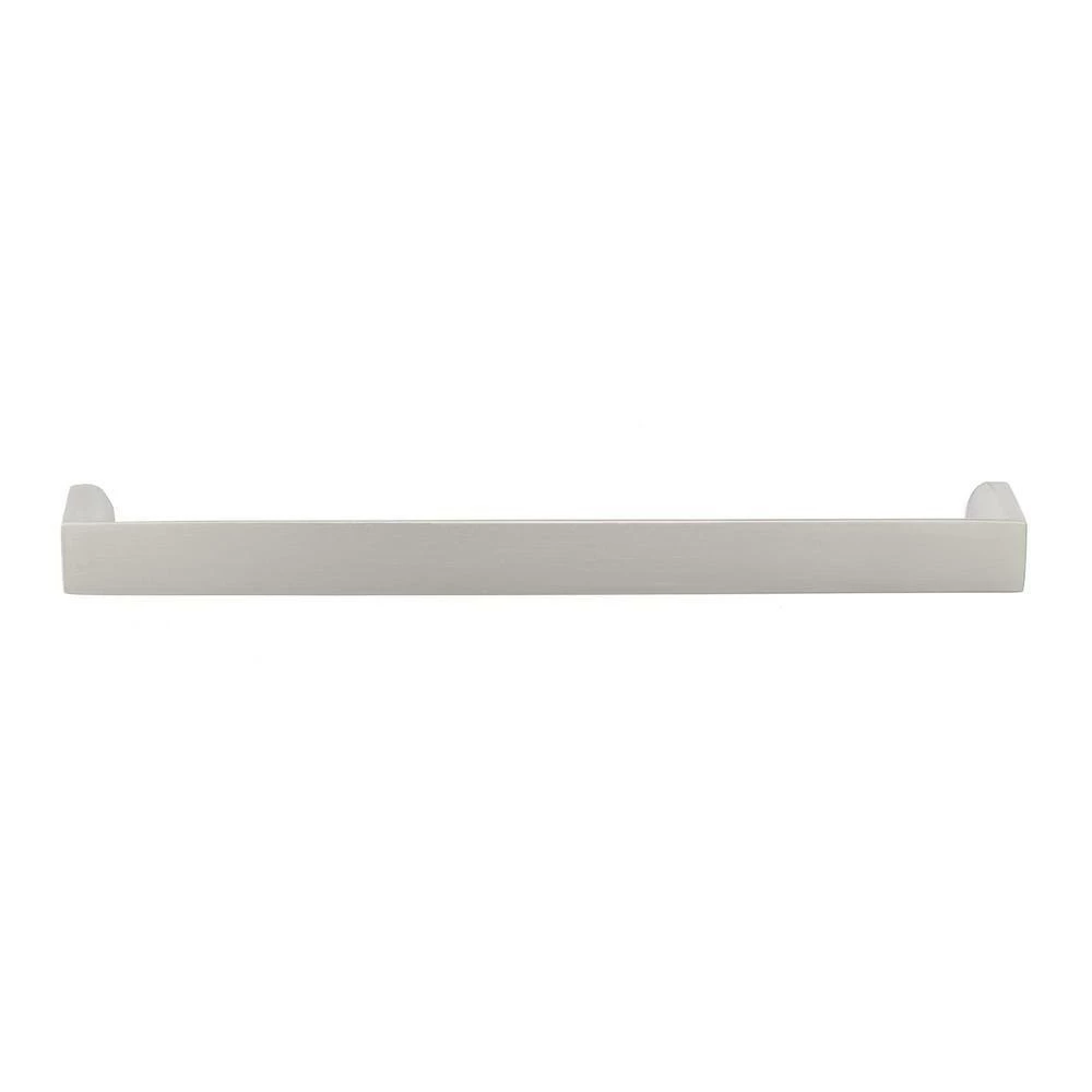 Contemporary metal pull by Richelieu. Sleek lines and a curved underside give this pull a timeless shape for furniture and cabinetry. The external look is modern, but the inside curve makes it very pleasant to use. Please note that the screws included with the products are a standard size of 1 in. (25 mm) length, quadrex, pan head. They will fit with most of the popular melamine thicknesses, which range between 5/8 in. to 3/4 in. (16 mm to 19 mm).