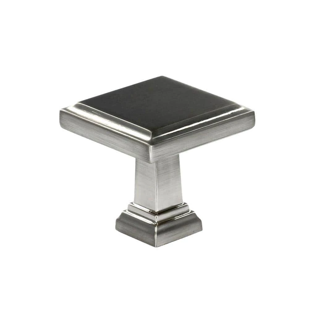Transitional square knob by Richelieu. Beveled edge and distinctive base lend a touch of elegance to your kitchen and bathroom furniture and cabinets. Please note that the screws included with the products are a standard size of 1 in (25 mm) length, quadrex, pan head. They will fit with most of the popular melamine thicknesses, which range between 5/8 in to 3/4 in (16 mm to 19 mm).