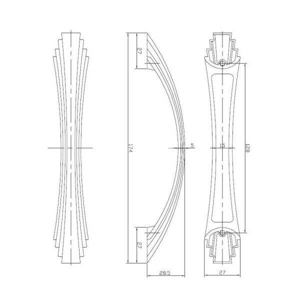 - Center to Center measurement (distance between the drill holes) : 5 1/16 in (128 mm)