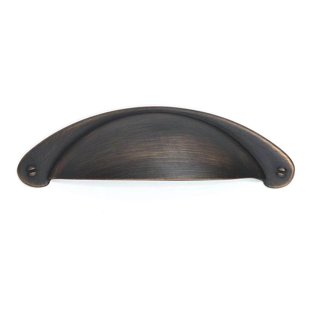 Traditional metal pull by Richelieu. With its sleek finish and smooth dome shape, this classic Richelieu cup pull fits flawlessly in any kitchen or bathroom. Mounting hardware included for easy installation.