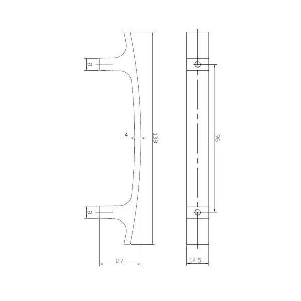 - Center to Center measurement (distance between the drill holes) : 3-3/4 in (96 mm)